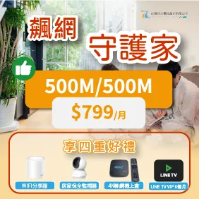 500M/500M 月租$799!再享超值四好禮 !!!